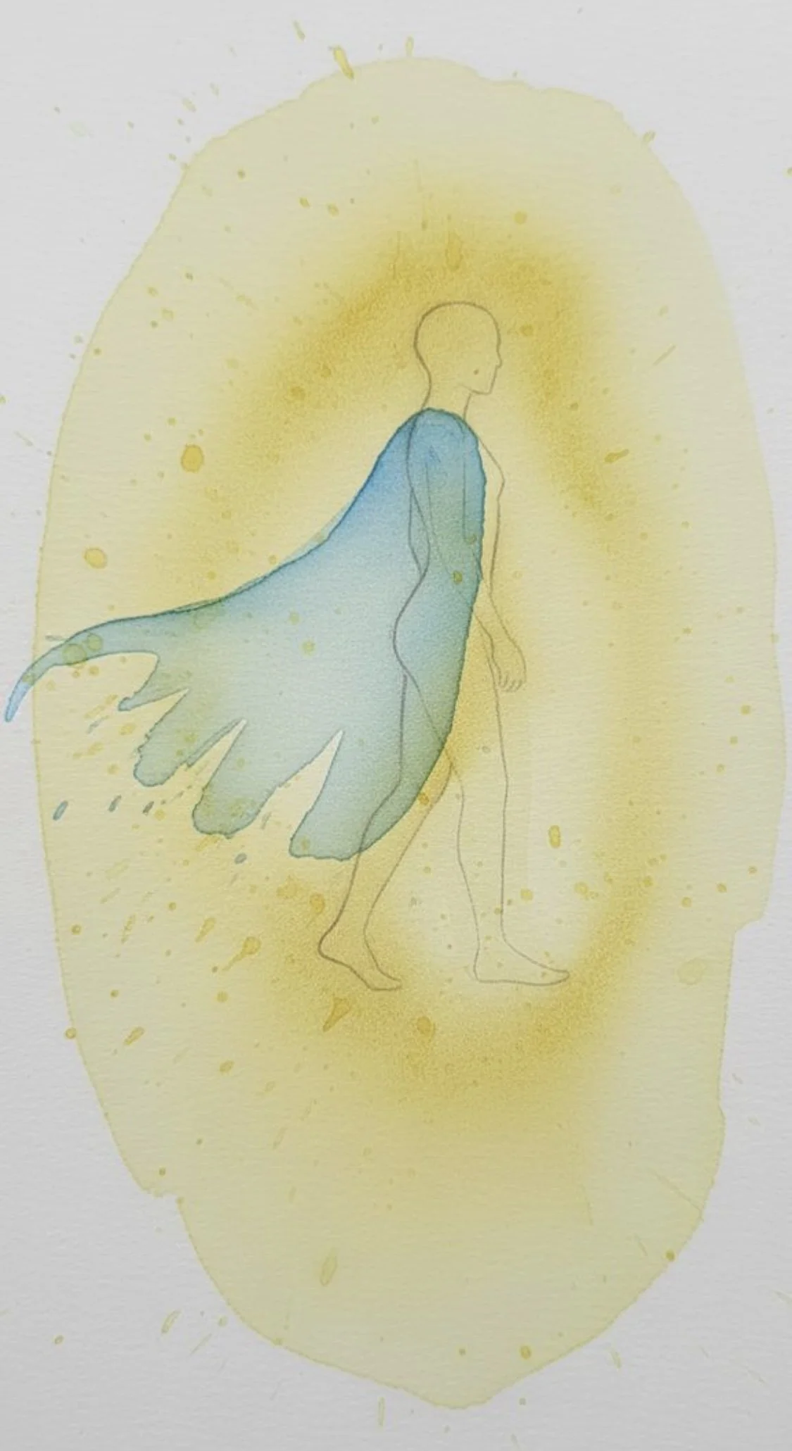 “As you breath imagine the space around you is a watery fluid holding you. Or sunlight filled air, whichever image draws you more into the exercise”